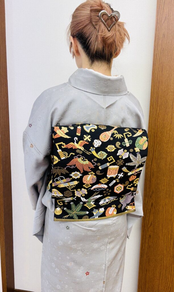 古典柄の宝尽くしの織の帯は存在感が出るし、赤の帯揚げは情熱溢れるギールさんらしさが出るので決定♪